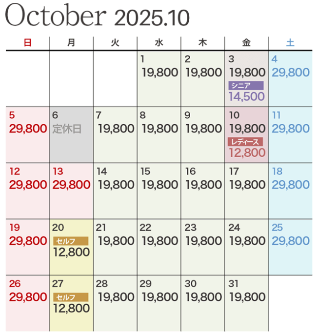 シニアデー・・・・・・・10月3日(金)※ご予約開始日は7月3日午前9時からとなります