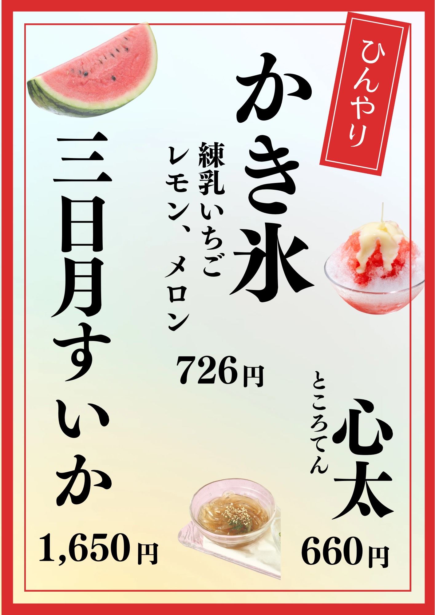 “今年はかき氷、すいかに加え、ところてんもオンメニュー。