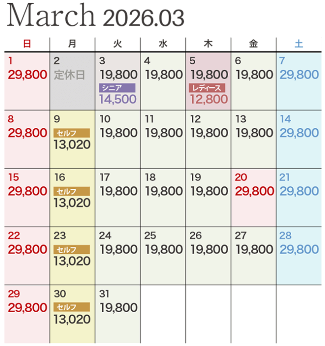 セルフデー・・・・・・・3月9日(月)16日(月)23日(月)30日(月)