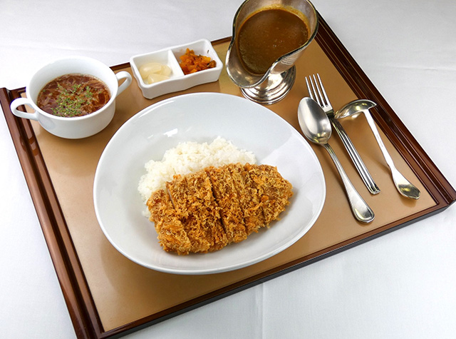 旨味豊かな県産豚のロースカツです。大根おろし+卵黄+ポン酢のソースでさっぱりとお召し上がりいただけます。